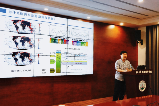 (通讯员 卢志远)2025年4月28日,澳门十大网投正规官网平台“求实导师学术沙龙”系列讲座在石油科技大楼C201会议室成功举办。澳门十大网投正规官网平台青年教师陈粲特任教授以《海洋甲烷事件与黑色页岩》为题,讲述了古海洋甲烷异常释放事件的气候、环境效应和其与黑色页岩之间的联系。并通过将今论古的研究思路,探讨了古海洋甲烷异常释放事件重建方法。讲座主要围绕印度洋安达曼海和我国南海神狐海域水合物站位的黄铁矿微量元素、粒径、硫同位素、镍同位素等,建立甲烷释放识别标志,并在深时地球甲烷频繁释放的华南埃迪卡拉系陡山沱组进行运用,证实了黄铁矿微量元素作为甲烷异常释放事件指标的可靠性,进一步探讨和展望了甲烷事件未来的潜在研究趋势。会后,现场的与会师生就碳、硫、镍同位素分馏机理进行了进一步深入的交流。