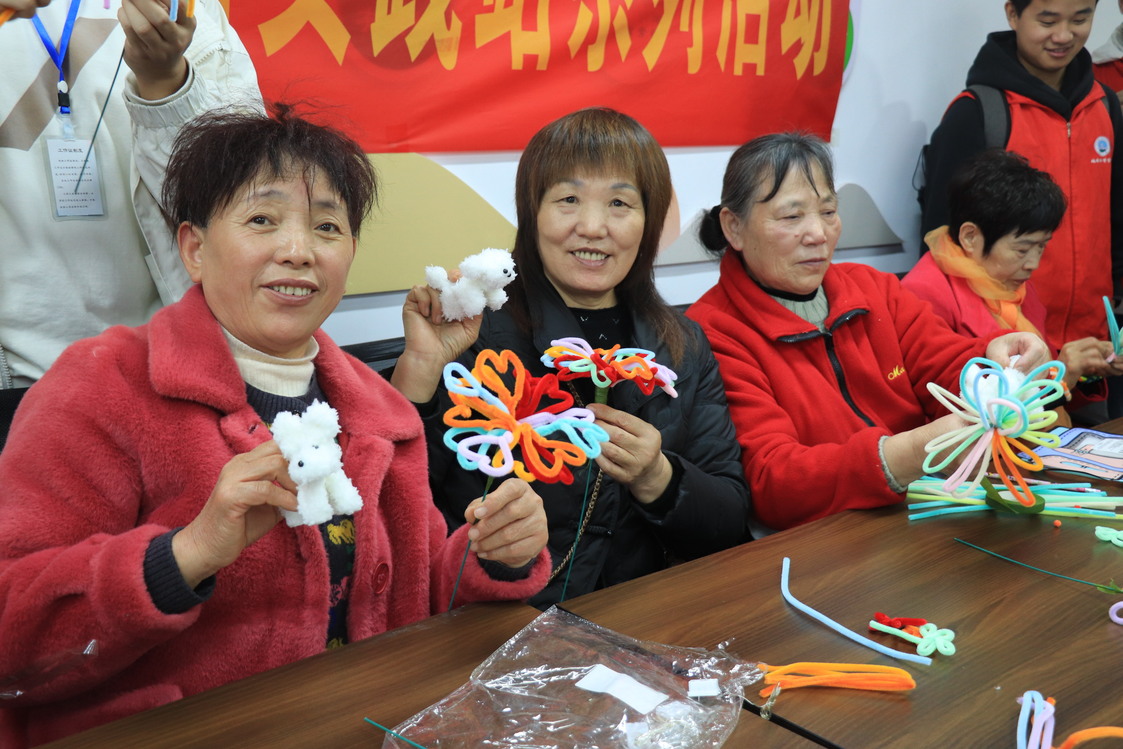 活动中,社区爷爷奶奶们在志愿者的引导下,发挥无限创意,将一根根色彩斑斓的扭扭棒扭转成形态各异的小动物、花朵和卡通人物。现场爷爷奶奶们的笑声与欢呼声此起彼伏,整个活动现场充满了欢乐与温馨,欢乐的氛围似乎让时间倒转,爷爷奶奶们都说仿佛回到了童年。