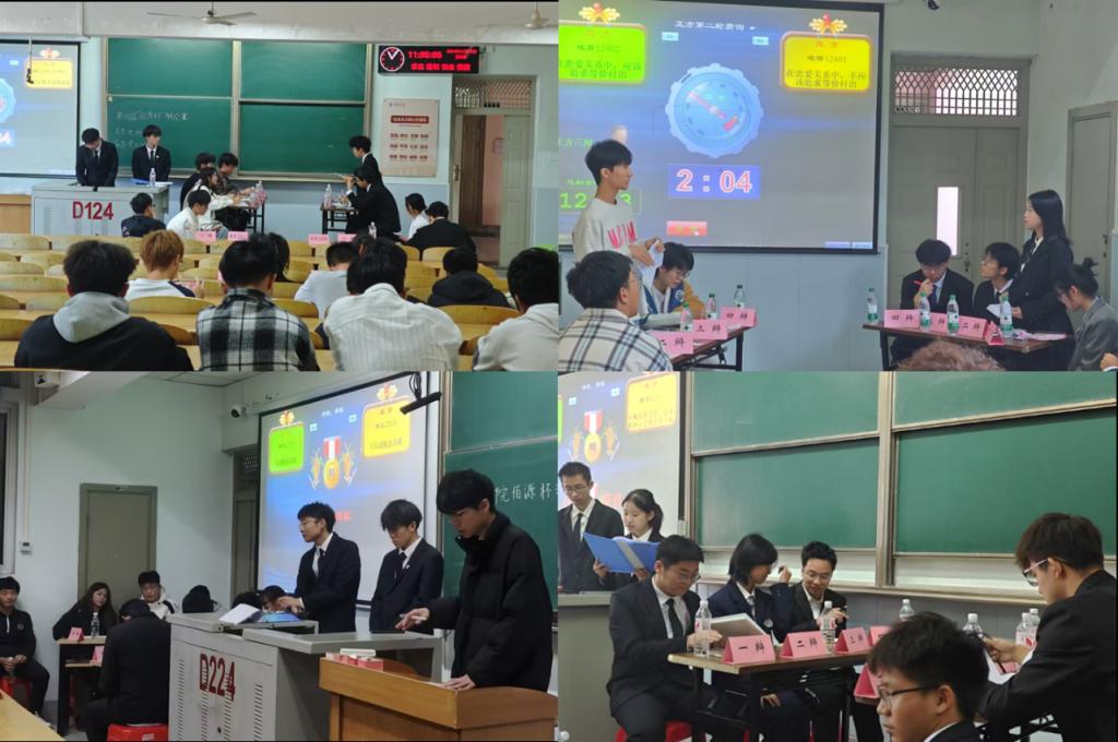 决赛开始,全场人员屏气凝神,正反双方围绕“熬夜是现代人的‘病’还是‘药’”这一辩题展开巅峰对决。正方地信 12402 班认为“熬夜是现代人的‘病’”,从现代生活矛盾性深入剖析;反方资工 12401 班则持“熬夜是现代人的‘药’”观点,以现代社会中的医生、警察等群体为例佐证。陈词环节,双方逻辑严谨,条理清晰;自由辩论时,正方提出“毒药”的说法,双方你来我往,互不相让,思维碰撞火花四溅;总结陈词阶段,双方再次明晰论点,升华辩题内涵。