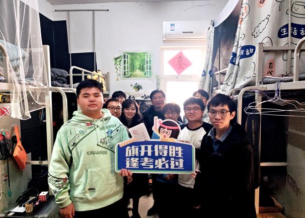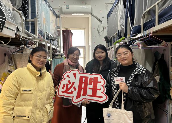 (通讯员 李雨泽 魏靖弢)随着2025年考研初试日期的临近,在紧张备考的冬日,十大网投正规官网考研学子的复习热情却越发激昂。为鼓励和关心十大网投正规官网考研学子,学院领导、21级班主任及学工办全体辅导员于12月17日中午走访2021级“备战”寝室,送去考前关怀,为同学们带来一份特别的温暖。