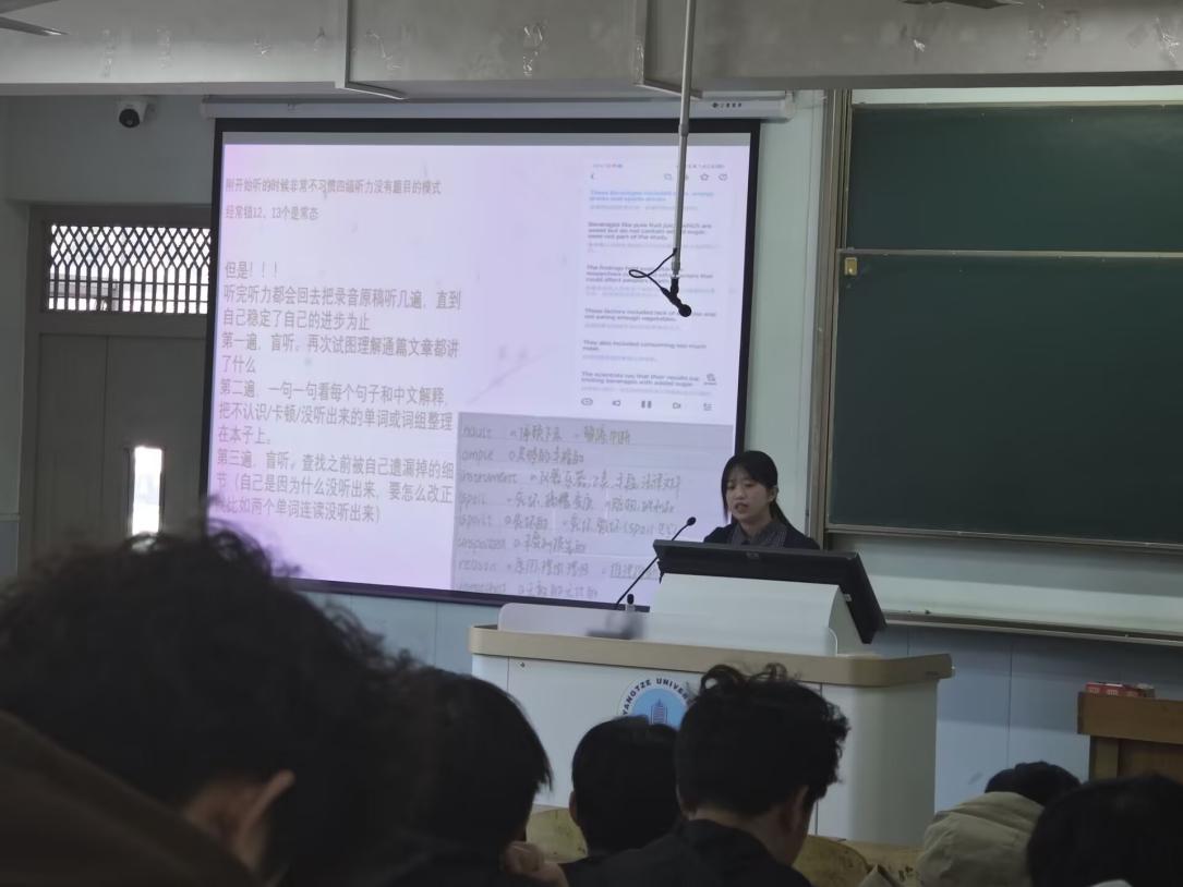 (通讯员 周文豪)3月20日下午,十大网投正规官网于东校区13教开展“地科青年说”第二期:英语四级备考经验交流会。2024级和2023级四级高分优秀学生代表雷航、韩艾希、卜文杰、王梓璇作为主讲嘉宾,为24级备战四级的同学做经验传承与备考指导,学工办毕浩浩和赵娥老师主持会议,助力考生科学备战四级考试。 资工油光22201雷航以“逆风翻盘”为题,讲述自己如何在完全没有听力基础的情况下,通过反复练习真题录音,熟悉语速和口音,最终在四级考试中取得高分。资工(卓越)22301班的韩艾希分享自己在备考时会根据自身实际水平设定合理的目标分数,并在达成目标时给自己一个小奖励,以激励自己不断努力。资工12401班的卜文杰提醒同学们一定要加强单词背诵,自己经常使用“百词斩”,以图片、视频讲解单词,生动有趣,适合碎片化学习。地信12401班的王梓璇说:“改变拖延的习惯,我们的备战就成功了一半。”几位同学分享了自己的备考经验和学习方法。他们从词汇积累、听力训练、阅读理解、写作技巧等方面进行了详细的介绍,并建议同学们合理安排时间,制定科学的学习计划,多做真题,注重总结错题,不断提高自己的英语综合能力。 随后,两位老师强调了英语四级考试对学生个人发展和学院人才培养的重要性。他们指出,英语作为国际通用语言,在全球化背景下的重要性日益凸显,熟练掌握英语不仅有助于同学们拓宽国际视野,还能为未来的考研、就业等打下坚实基础。同时,他们也肯定了同学们在英语学习方面付出的努力,并鼓励大家在接下来的备考过程中坚定信心,持之以恒。 学院已建立“四级加油站”,每天为同学们分享一篇四级阅读文章。本次会议同步启动"四级帮扶计划",50名高分学子将对接备战四级考生开展四级专项辅导。此次四级动员大会的召开,极大地激发了同学们备考四级的热情和信心。 (编辑 赵娥 审核 冯舒)