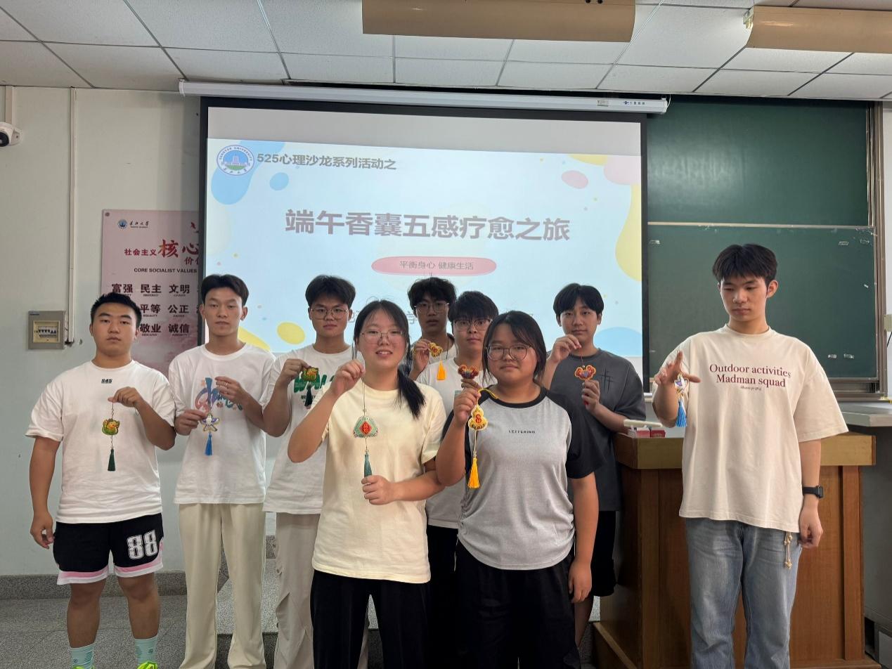 小小香囊承载着万千美好祝福,此次活动作为525心理沙龙子活动之一,让同学们既体验到动手的成就感,又感受到中国传统民俗文化的魅力。周文豪同学说:“最近由于学业压力,感觉整个人都很紧绷今天亲手穿针引线,在专注于这些细节的过程中,我内心的焦虑慢慢被抚平,感觉压力得到了释放。”