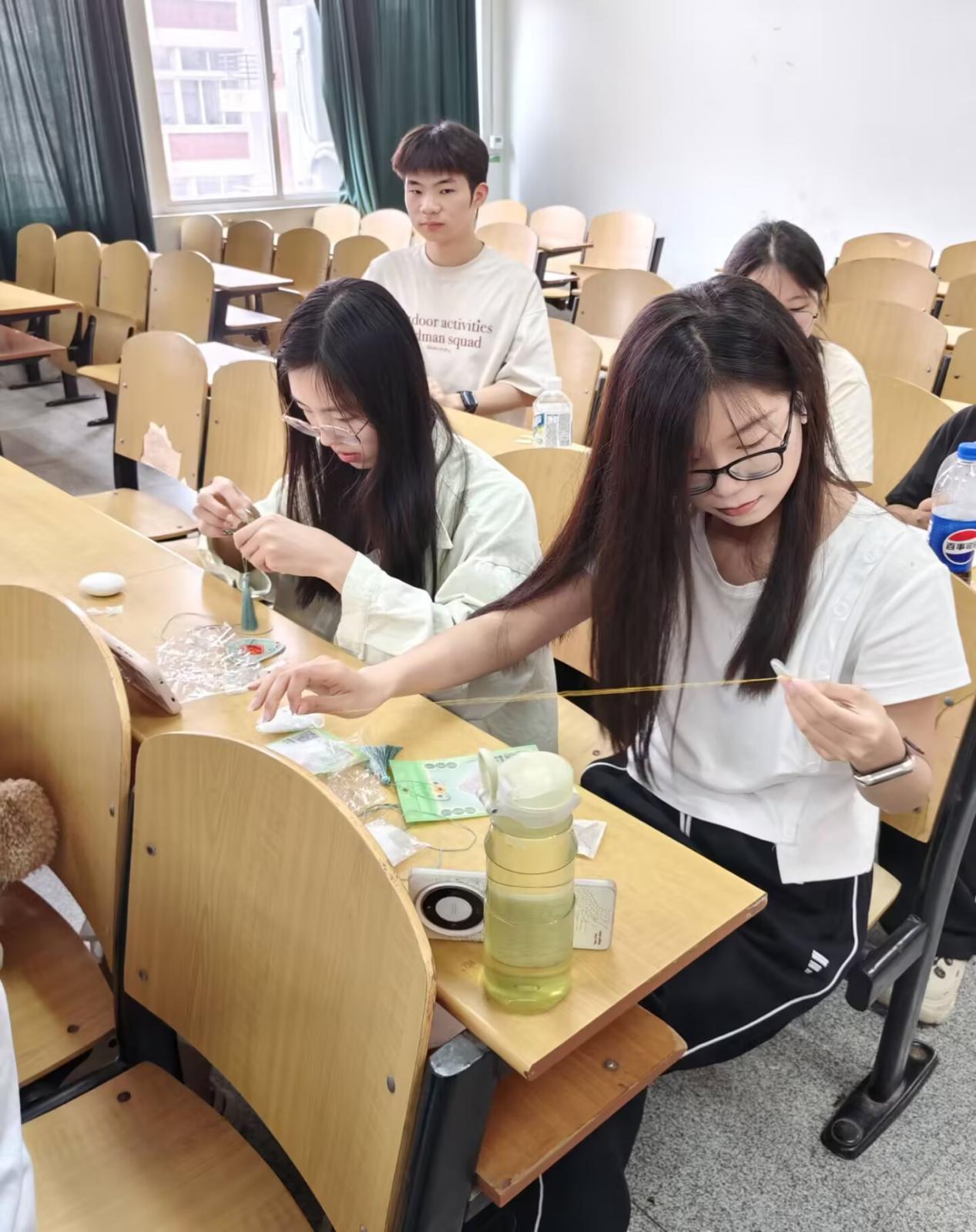 通讯员 程立辉 宁佳怡/摄为丰富校园生活,传递身心健康观念,5月29日下午,在端午佳节来临之际,学生会心育部在武汉校区华林公寓9栋活动室、荆州东校区13教b-310同步开展“端午香囊五感疗愈”心理沙龙,约30名同学到场,共同感受传统文化的疗愈力量。