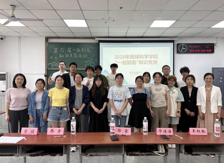 学工办全体师为获奖队伍颁奖并合影留念,地科学院第六届“一站到底”百科知识竞赛在欢笑声中圆满落幕。
