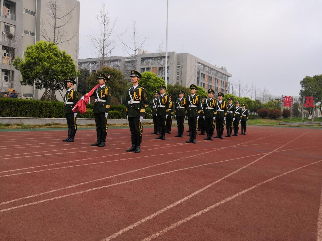 升旗仪式上,学生们朝气蓬勃,精神抖擞。训练有素的国旗护卫队庄严肃穆地出旗,在激昂的国歌声中和全场师生的注目下,迎着初升的太阳,鲜艳的五星红旗缓缓升起,飘扬在校园上空。