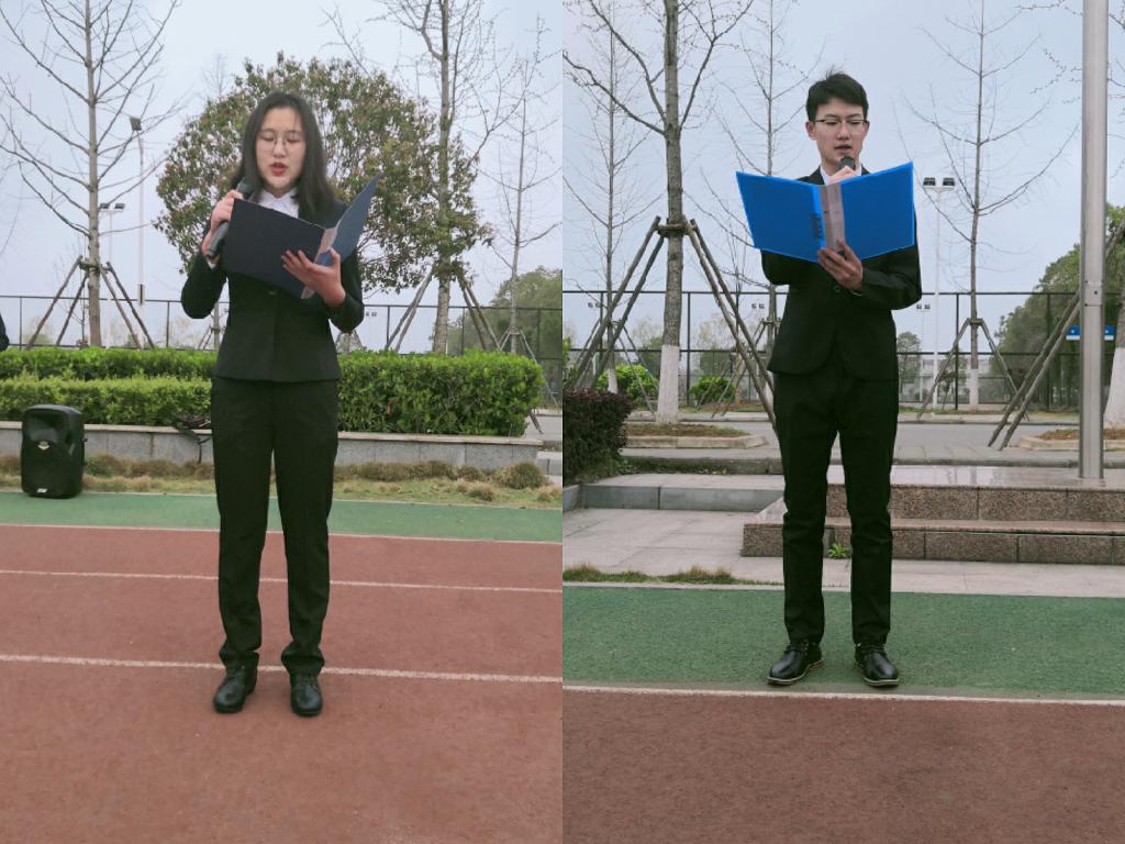 而后,来自地质(资源)21801班的周洁同学以“怀揣梦想,耕耘希望”为主题作了国旗下的讲话。“一日之计在于晨,一年之计在于春”,春天是一个全新的开始,周洁同学鼓励大家与万物共同努力生长,奋力向前。接着,来自地质(工程)21801班的刘新元同学发表了“聚焦两会,争做新时代青年”的讲话,他给大家简单介绍了全国两会的一些常识,并对2019年全国两会报道高频词,如“人工智能”、“脱贫攻坚”、“乡村振兴”、“减税降费”等进行分析,提醒大家作为大学生的责任:“我们要从被动转为主动,用更加积极的心态去关心国家大事,了解政府的动态,为建设和谐社会贡献自己的力量,真正做到总书记口中的新时代青年”。