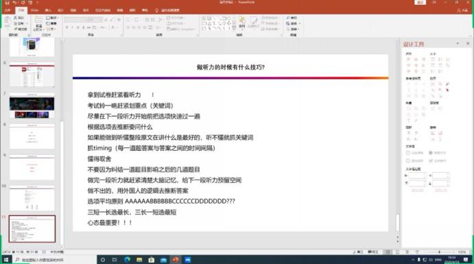 此次交流会旨在使19级本科生更好地面对英语四级考试的听力部分。会议伊始,地信21801班的代慧敏同学以“循序渐进”的英语学习方法为出发点,着重强调了平时积累的重要性,同时,告诫同学们创造一个浓厚的英语学习环境是学好英语的必要条件。而后,来自资工(油光)21801班的柴浩博同学则提出要端正自身态度,重视英语学习。在平时的英语课堂上应积极跟上老师进度、认真完成课程作业;课下则还需复习巩固老师所讲的知识点:对于大学生英语四级考试,柴浩博表示所有的方法、技巧都必须建立在实力的基础上,告诫19级本科生们应注重积累,夯实基础。