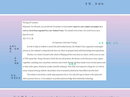 交流会结束前,罗老师总结致辞:“因为疫情关系,同学们不能回到学校,但是不论在哪儿,都希望同学们在备考英语四级这段时间里能好好复习,多做练习,顺利通过考试。”本次交流会,增强了同学们对于四级考试备考的信心,相信在全体师生的共同努力下,十大网投正规官网定能再创新高,取得更好的成绩。
