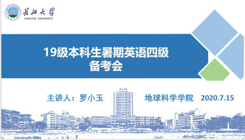 通讯员(蒋晓洁)为加强十大网投正规官网19级本科生对英语四级考试的重视程度、提升考试通过率,十大网投正规官网于7月15日晚八时通过雨课堂平台开展了线上英语四级暑假备考活动,本次活动由19级辅导员罗小玉老师主讲。