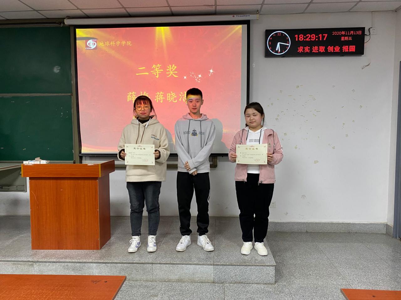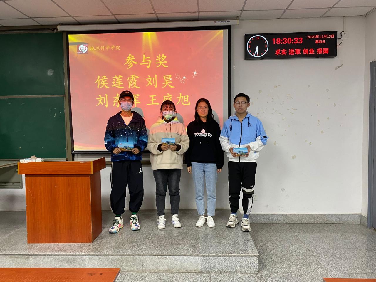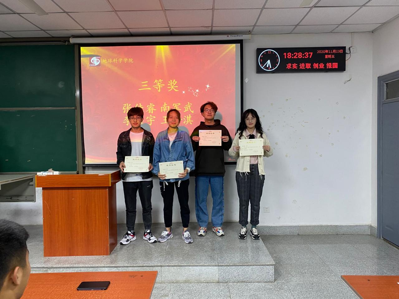 大会伊始,主持人蔡哲宇宣读获奖学生名单,王健生学长、李虹燚学长、高德祥学长、郑娜学姐分别为获奖学生颁奖,一起合影并表示祝贺,鼓励获奖同学继续努力,争取再创佳绩。据悉,此次大会的表彰结果是通过自主报名、审核小组审核两个步骤,评选方式采用积分制排序,根据积分排名评选出一二三等奖及参与奖。