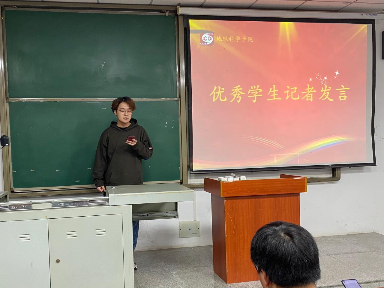 接着,优秀学生记者代表薛梅学姐和李盎宇学长向大家分享自己的学生记者之路,薛梅谈到在校报记者团和学生会新网部的任职经历,觉得收获很大。李盎宇在谈及自己的进步时说到:“从一名懵懂的新网部干事到可以单独成稿,独当一面的新网部副部,其中的努力付出与心酸苦涩只有自己知道,很荣幸可以有机会为校媒的发展贡献力量。”