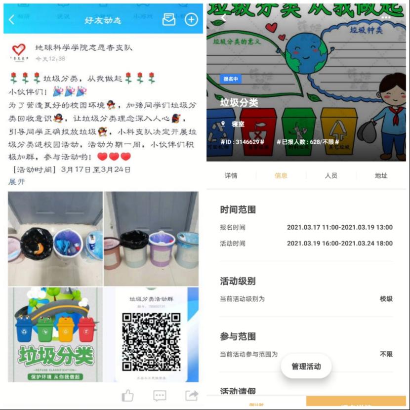 3月17日开始,十大网投正规官网地科院实践部各成员开始着手策划“垃圾分类”活动。3月18日实践部成员在地科院官Q上宣发此次活动,并在到梦空间发布活动,动员学生积极参与。