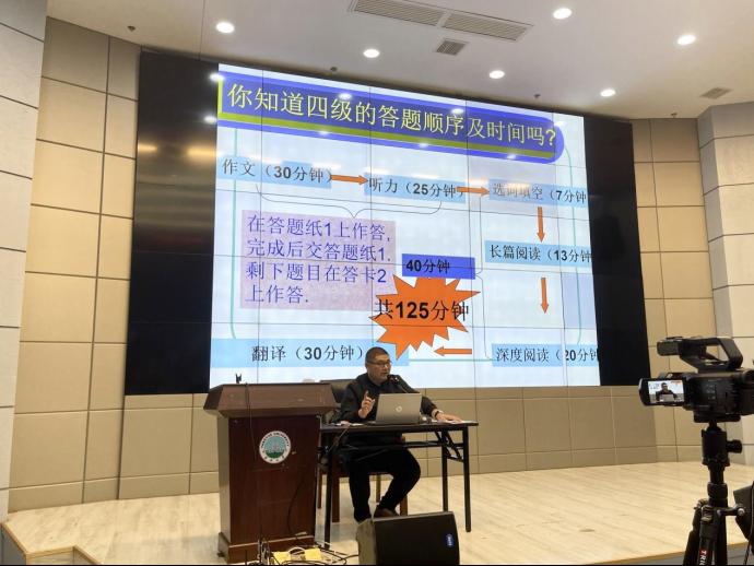 (通讯员 王佳颖)为助力学生顺利通过英语四级考试,十大网投正规官网分别于4月14日、19日、27日晚6点半在石油科技大楼学术报告厅开展了“新文道”讲座,三次讲座分别从阅读、写作、听力三方面进行了技巧解析。