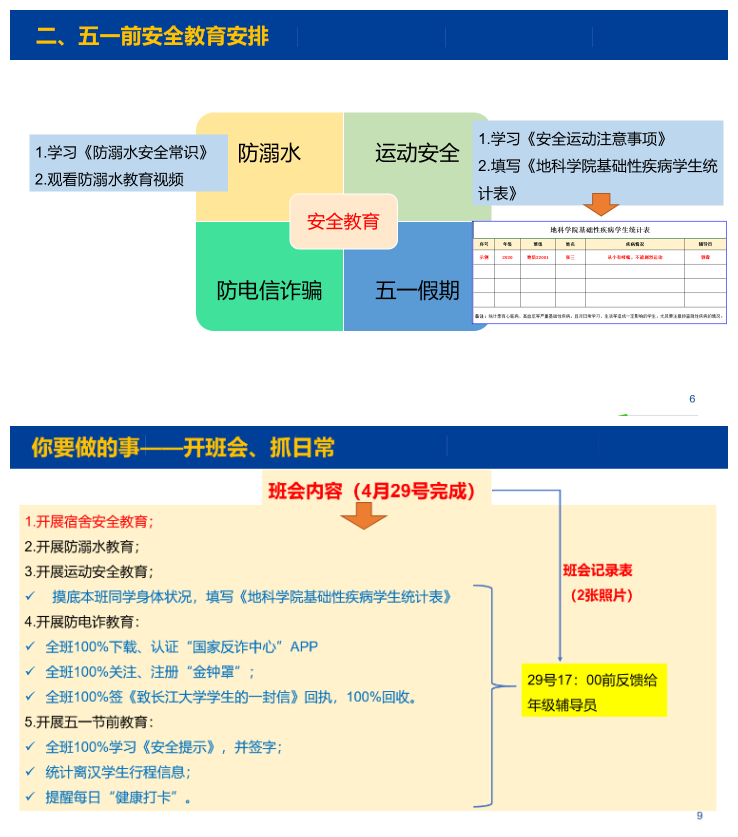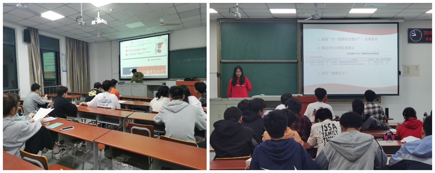 根据会议要求安排,十大网投正规官网所有班级已于4月26日—29日召开五一假期安全教育主题班会,全院学生100%下载实名注册“国家反诈中心”APP、100%关注实名注册“金钟罩”公众号、100%签署防诈“致澳门十大网投正规官网平台学生的一封信”回执、100%报备假期离汉行程、100%签署五一假期安全告知书。