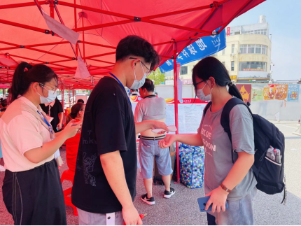 (通讯员孔祥睿)9月3日8点半,满怀憧憬的2021级新生黄金妮及家长先于报到时间,已到校门口等候,正在搬运物资的老师和志愿者们迅速行动起来,提前上岗迎接新同学。学院领导丁四兵、任倩及新生班主任等多次来到迎新点了解新生报道情况并指导工作。