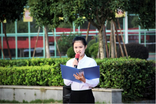 升旗仪式第三项:国旗下讲话。地信22101班董佳莹在讲话《举国缅怀,共庆未来》中讲述了中国近年来取得的瞩目成就与成就背后赵一曼、王继才等英雄的感人事迹,激荡起同学们强烈的家国情怀。她呼吁当代青年以前辈为榜样,勇担时代重任,共创祖国的美好明天。