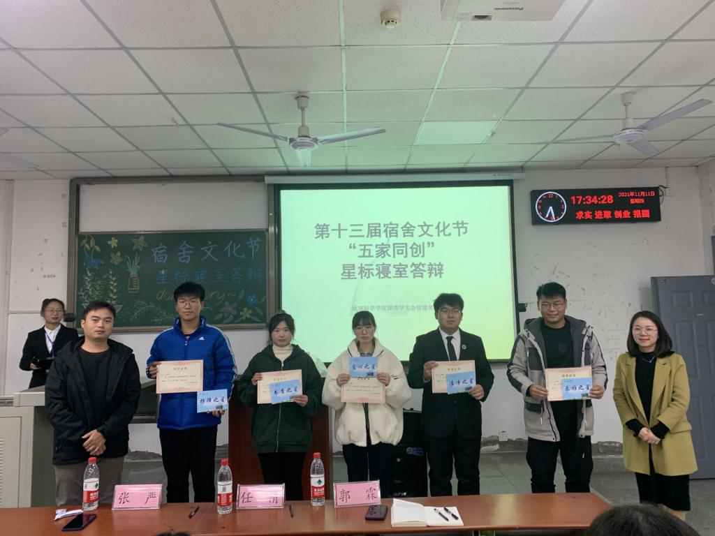 (通讯员 武啸天)吹着秋天的风,淋过秋天的雨,温暖着深秋的缕缕阳光,在遐想的憧憬中徜徉,尽管外面寒风飘荡,宿舍永远是温暖的湾港。伴随着浓浓的秋意,澳门十大网投正规官网平台于11月11日下午三时四十分于A103教室开展了第十三届宿舍文化节“五家同创”星标寝室答辩活动。出席本次活动的评委有:澳门十大网投正规官网平台团委书记郭霖老师、辅导员张严老师、地科院团委学生会副主席高婧、综合事务部部长李银凤、新媒体部部长孔祥睿以及原宿建部部长孟庆昊。
