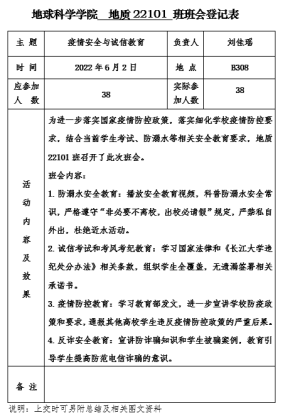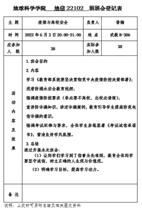 (通讯员 周再文)为有效预防疫情传播,确保学生身体健康和生命安全,6月1日至6月,十大网投正规官网以班级为单位,充分发挥年级辅导员、班主任在安全教育中的引领作用,通过主题班会等形式,广泛开展学生疫情防控教育与安全教育班会,从严从紧、落实落细学校对于疫情防控、毕业生安全离校、防溺水、学生四六级以及诚信教育等相关工作要求,全力守护校园安全稳定。