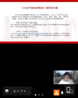 活动中,同学们全神贯注,认真汲取党中央最新政治理论思想。在讨论环节中,同学们都勇于开麦发言,表达他们的想法及观念。