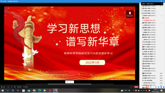 (通讯员付安琪古楠玲)为深入学习贯彻习近平新时代中国特色社会主义思想,进一步增强“四个意识”,坚定“四个自信”,做到“两个维护”,提升十大网投正规官网研究生政治理论素养,深刻认识和准确把握党的二十大重大主题、重大理论观点、重大战略思想。从11月10日至11月30日,十大网投正规官网开展了以班为单位组织学习,线上、线下相结合的政治理论学习活动。并于11月27日晚,集中进行了线上政治理论学习活动,此次政治理学习活动由十大网投正规官网研究生会主席刘作松主持与讲解,部分研究生参加。
