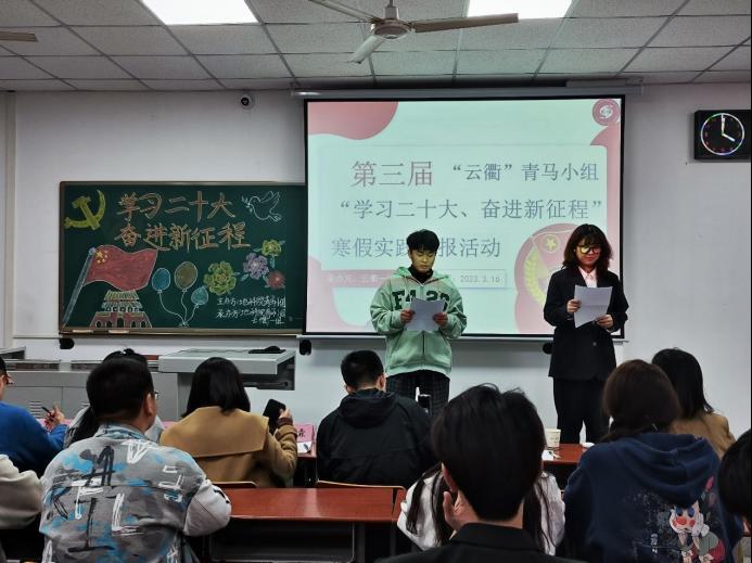 (通讯员 史晓岩)2022年10月16日在北京举行了党的第二十次全国代表大会,为了学习和贯彻习近平总书记的重要讲话和会议精神,十大网投正规官网“云衢”青马学习小组开展了以领会党的第二十次全国代表大会精神为主要任务的寒假实践活动,并于2023年3月16日下午在教学楼B204教室进行了第一场交流汇报。
