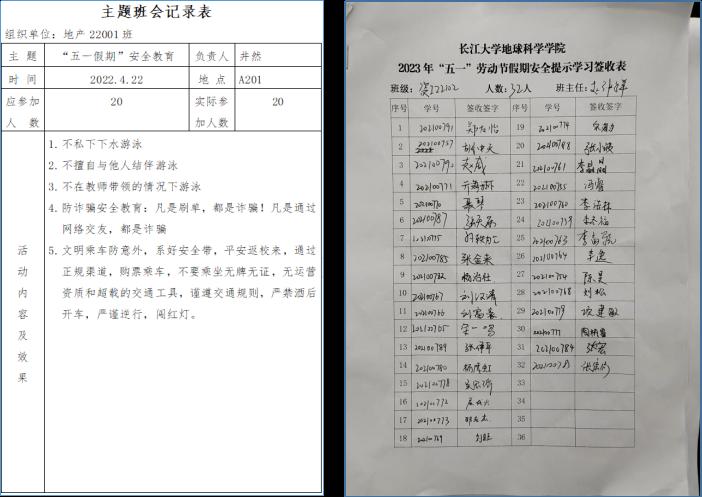 “五一”假期临近,为做好全院学生节前安全教育工作,进一步增强学生的安全防范意识,4月20日至24日学院各班陆续开展了“五一”假期安全主题教育班会。