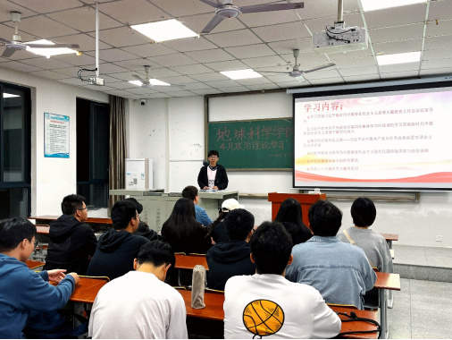 (通讯员周长辉)为持续提升十大网投正规官网研究生政治理论素养,更好的学习贯彻习近平新时代中国特色社会主义思想主题教育工作会议思想。十大网投正规官网开展了以班为单位组织学习,线上、线下相结合的政治理论学习活动,并于4月27日晚,在A-105教室集中进行了线下政治理论学习活动。此次学习由地科学院研究生会主席刘作松讲解,部分研究生参加。
