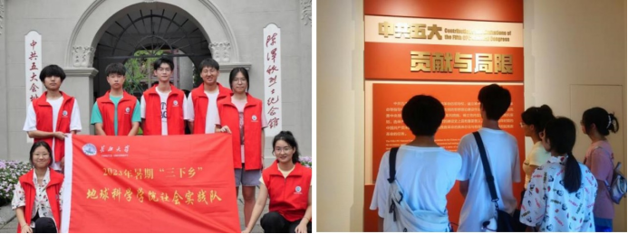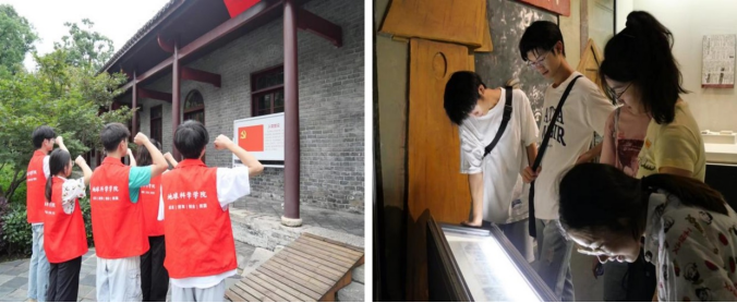 图4 实践队员在中国五大会址纪念馆前合照及参观中国五大会址纪念馆