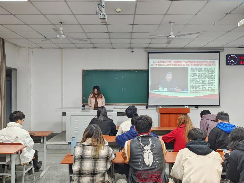 会上,以谢歌、穆浪、董斯源、郭梦浩、高雨凌、韩茂洲等同学作为代表,带领大家进行理论学习,先后学习了“习近平主持召开进一步推动长江经济带高质量发展座谈会强调进一步推动长江经济带高质量发展更好支撑和服务中国式现代化”、“习近平在中共中央政治局第九次集体学习时强调铸牢中华民族共同体意识推进新时代党的民族工作高质量发展”以及“《求是》杂志发表习近平总书记重要文章《开辟马克思主义中国化时代化新境界》”主要内容。随后,韩奎奎同学就推动教育强国建设这一主题,组织成员们开展主题研讨。