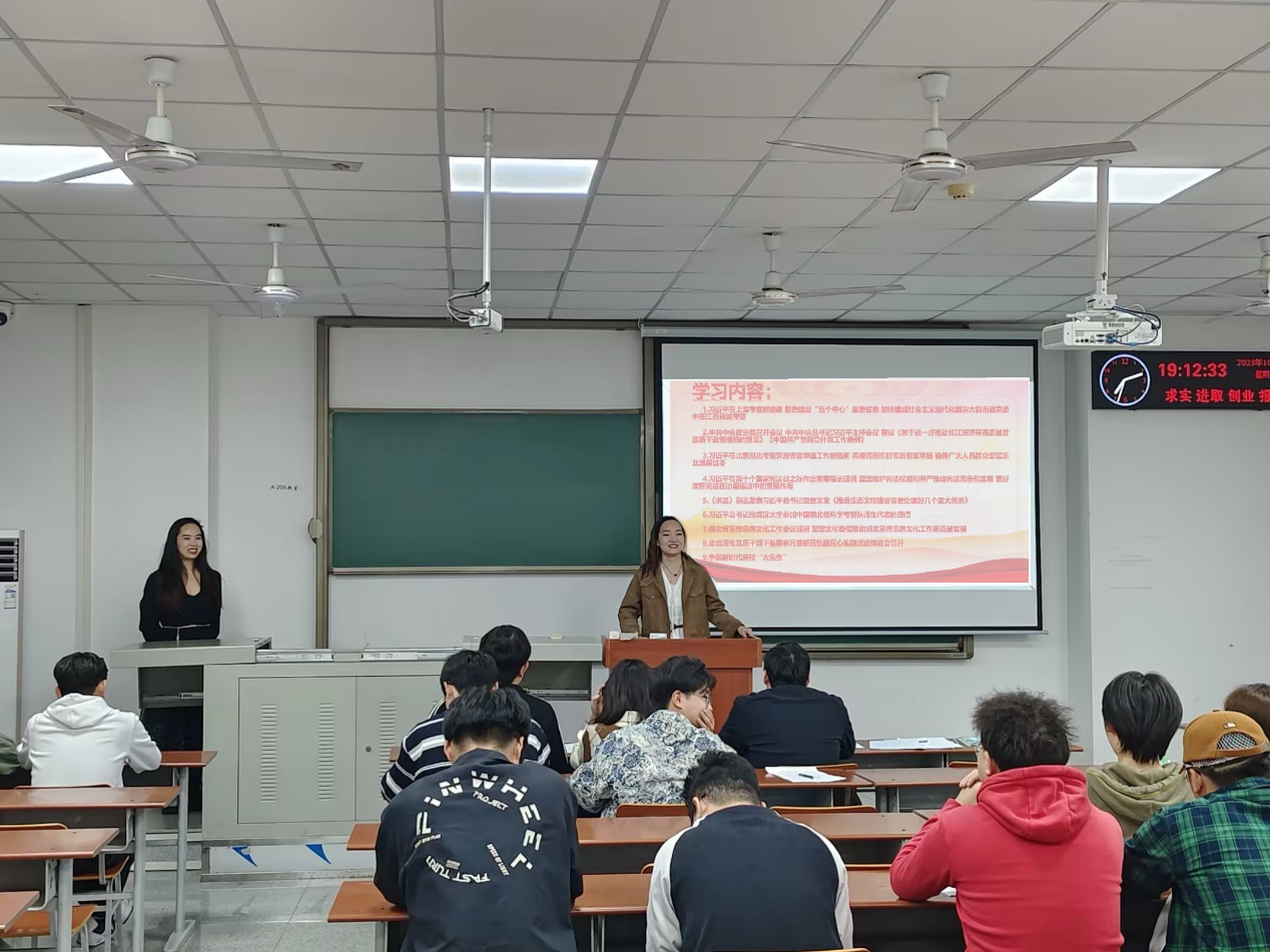 会上,赵丽芳同学作为代表带领大家进行理论学习,先后学习了“习近平在上海考察时强调聚焦建设‘五个中心’重要使命加快建成社会主义现代化国际大都市返京途中在江苏盐城考察”、“中共中央政治局召开会议中共中央总书记习近平主持会议审议《关于进一步推动长江经济带高质量发展若干政策措施的意见》《中国共产党领导外事工作条例》”以及“习近平在北京河北考察灾后恢复重建工作时强调再接再厉抓好灾后恢复重建确保广大人民群众安居乐业温暖过冬”主要内容。
