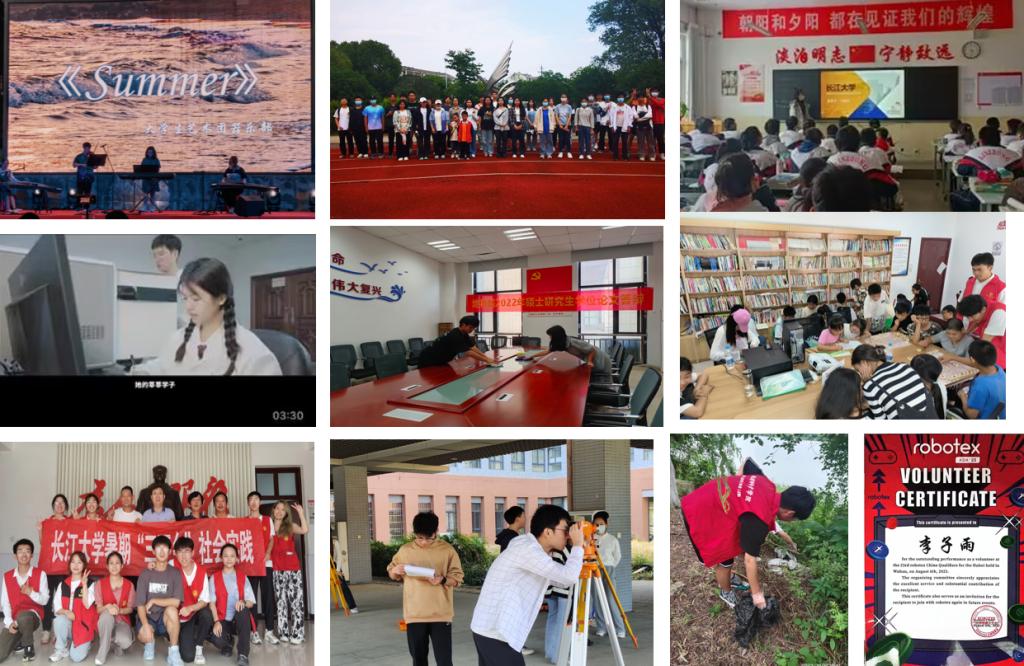 同时大家积极参与社会实践活动、志愿活动,如组织策划能源文化节闭幕式表演、参加姚家林小学支教活动、多次组织参与各项羽毛球比赛并担任主裁、回访母校宣讲、代表地科院参与学校的百生讲坛总决赛、作为地科院学生代表出席澳门十大网投正规官网平台第五次学生代表大会、参与20年校庆视频拍摄、办公室卫生打扫、校园清扫、暑期三下乡社会实践、担任第23赛季Robotex湖北省赛区武汉站的志愿者、2023级新生迎新、受邀给全体地科院同学进行暑期社会实践宣讲等。