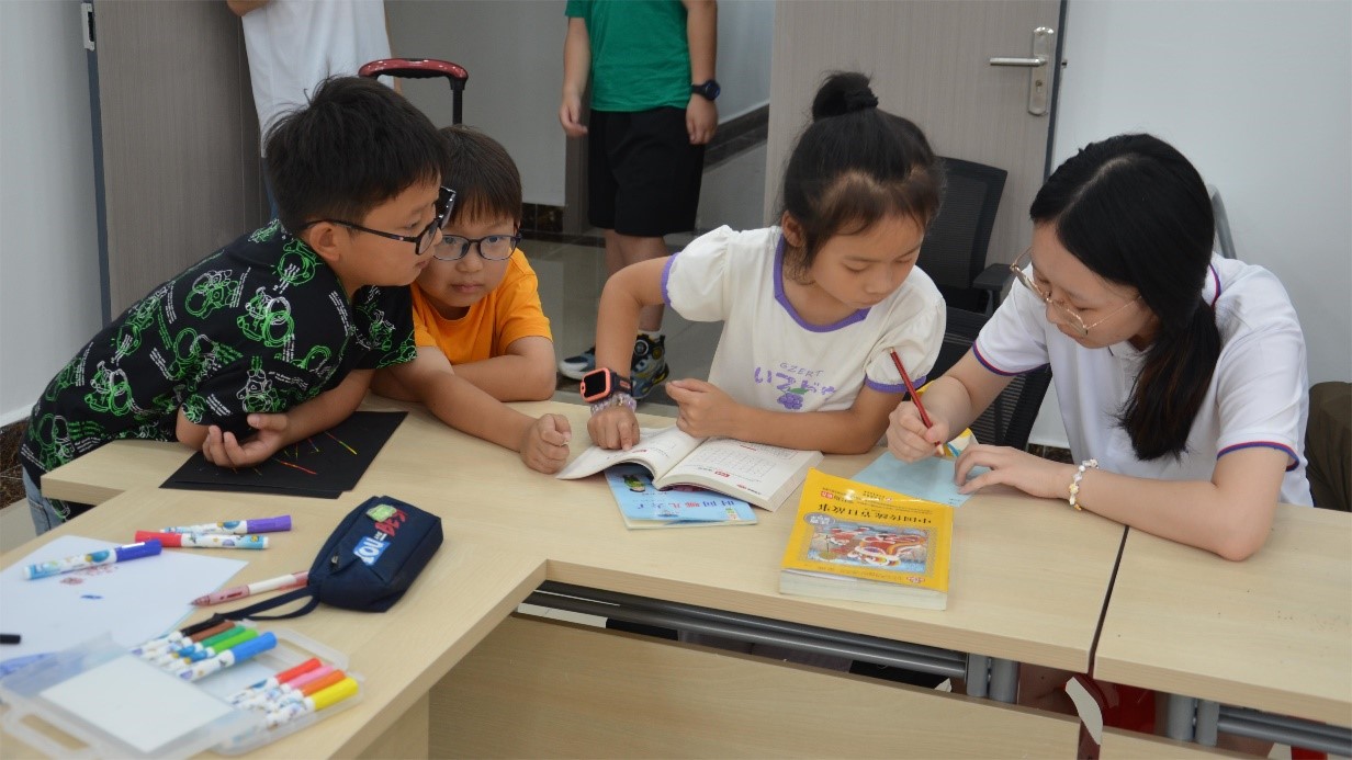 图5志愿者教孩子们画画