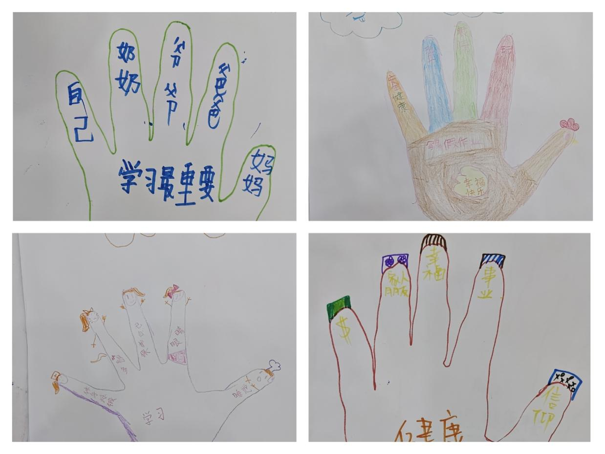 小手画完后,孩子们纷纷向大家分享自己的成果。很多孩子都写出了家人在他们心中占据着无可替代的位置,也有小朋友觉得学习最重要,认为追求知识,认识世界是他们的梦想。通过此次心理课堂游戏,孩子们开始表达自己的内心世界,探索和理解自己的真实感受,能够鼓励孩子们建立自信,发展情绪智力,并培养他们解决问题的能力。