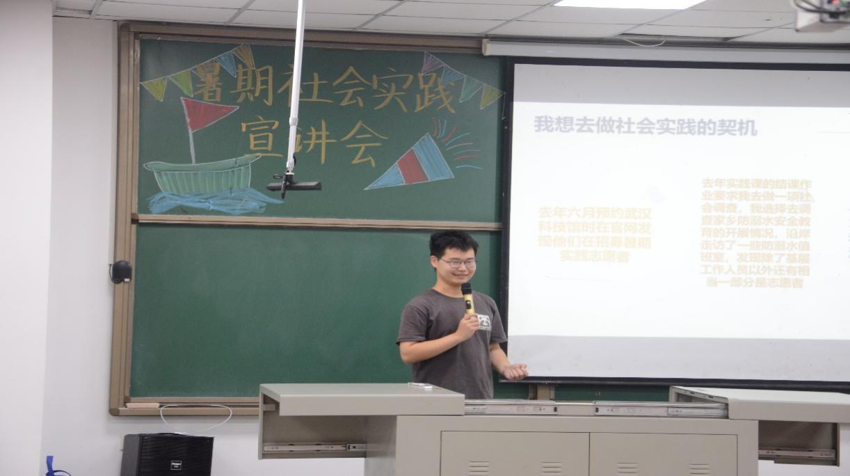 十大网投正规官网“后浪”暑期社会实践队党宇烁同学分享了他参加学院团委联合蔡甸区高湖社区开展的“暑假学堂”系列志愿服务活动。在本次活动中,志愿队通过开展地质科普讲座、暑期安全科普和心理健康教育等一系列志愿活动,同时走访社区困难家庭,为社区发展注入青年活力,展现了青年责任与担当。最后他鼓励我们积极投身社会实践中,这对我们和小朋友们的成长以及未来的发展都具有重要意义。