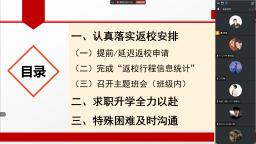 学院组织召开春季开学班主任和辅导员工作专题会议,传达学校关于新学期开学工作的具体要求,细化落实学生返校报到、教学安排、心理健康教育等重点工作,做好学生提前或延迟返校的学生沟通与服务保障工作,为新学期开好局、起好步奠定基础。各班级通过线上形式全覆盖召开返校安全教育主题班会。辅导员、班主任全程参与,重点向学生传达返校时间安排、报到流程、宿舍管理要求。