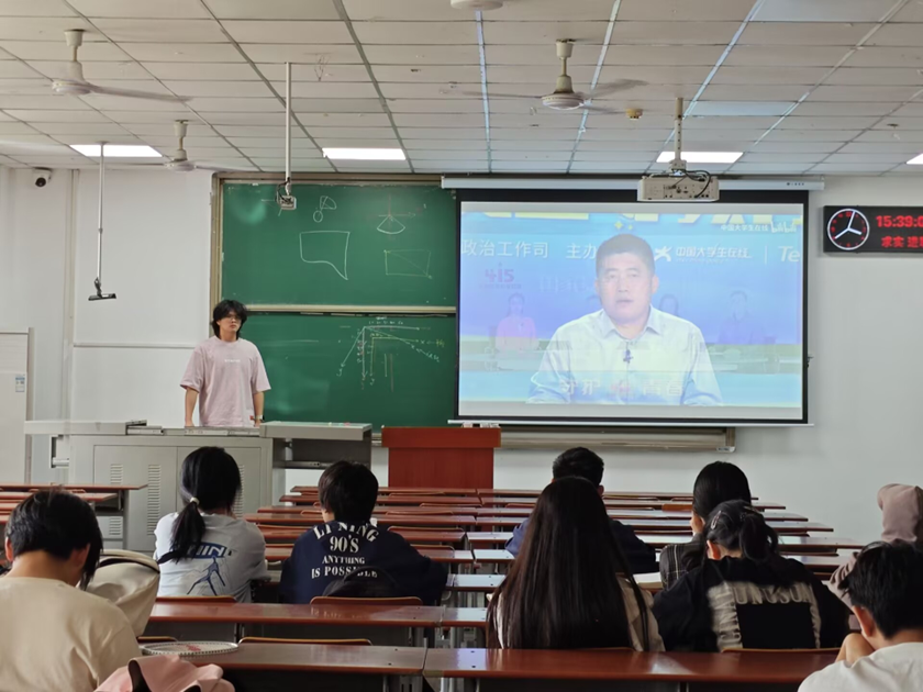 4 月 15 日下午,在各班班长的带领下,同学们一起观看“中国大学生在线视频号”直播的“千万师生同上一堂国家安全教育课”主题公开讲座。视频以真实案例阐述国家安全与个人的紧密联系。讲座互动频繁,师生踊跃提问,学习氛围浓厚。