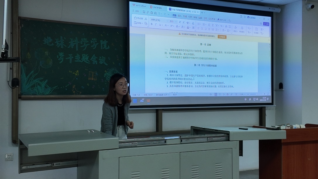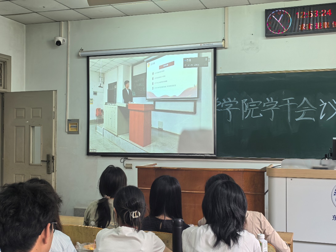 毕浩浩老师就《学生干部管理条例》进行了解读,围绕学生干部的职责定位、个人要求以及考核机制展开阐述。她解释说:“学生干部应明确自身职责,以服务师生为宗旨,强化责任意识,把责任感、使命感作为干好工作的动力,保证工作质量,提升工作效率,为学院发展增光添彩。”
