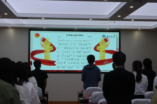 活动第二阶段举行入团仪式。在团旗见证下,8名新团员庄严宣誓。随后,新团员代表王雨鑫作表态发言:“我们将牢记习近平总书记的嘱托,以戍边志愿者为榜样,刻苦学习专业知识,积极参与志愿服务,把青春汗水挥洒在祖国边疆建设事业中!“ 最后,全体成员齐唱《光荣啊,中国共青团》,铿锵誓言与激昂歌声交织,彰显青年坚定信念。