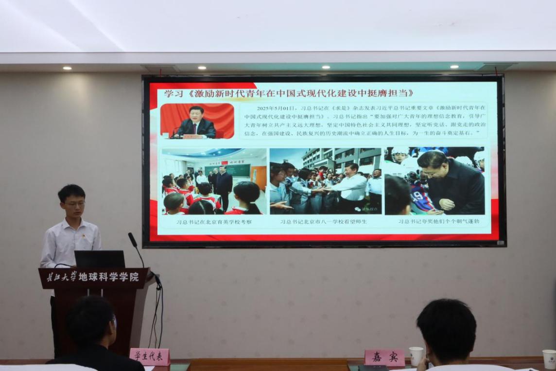 饶旭乾同学则聚焦“专业报国”实践路径,分享其如何将地理信息技术学习成果转化为服务国家需求的行动方案。他结合实际案例,阐释地理信息科学在乡村振兴、智慧城市等领域的应用前景,呼吁大家“以技术之长扎根一线,在服务人民中实现价值”。