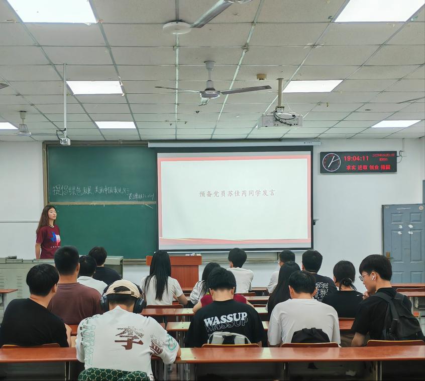 团支书成星星首先阐释“倡导绿色发展,美丽中国我先行”理念内涵,结合生态环保案例,说明绿色发展对美丽中国建设的关键意义。接着围绕“青年在绿色发展与美丽中国建设中的责任与行动”这一主题,动员大家用实际行动践行绿色生活,以专业所学助力生态保护与绿色发展。