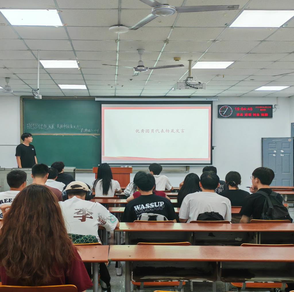 在活动总结环节,团支书成星星号召全体同学要将绿色发展理念内化于心、外化于行,从节约每一度电、每一张纸做起,将环保意识融入日常学习生活。同时勉励大家要以杨晟等优秀同学为榜样,在专业学习中练就过硬本领,在实践中培养廉洁品格,用实际行动诠释新时代青年的责任担当。