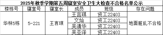 为加强学生宿舍安全管理和文明建设工作,确保学生宿舍安全、整洁、文明、有序,根据学校要求,十大网投正规官网于10月9日开展了第5周学生宿舍自查工作,现将检查情况通报如下