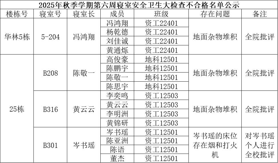 为加强学生宿舍安全管理和文明建设工作,确保学生宿舍安全、整洁、文明、有序,根据学校要求,十大网投正规官网于10月16日开展了第6周学生宿舍自查工作,现将检查情况通报如下