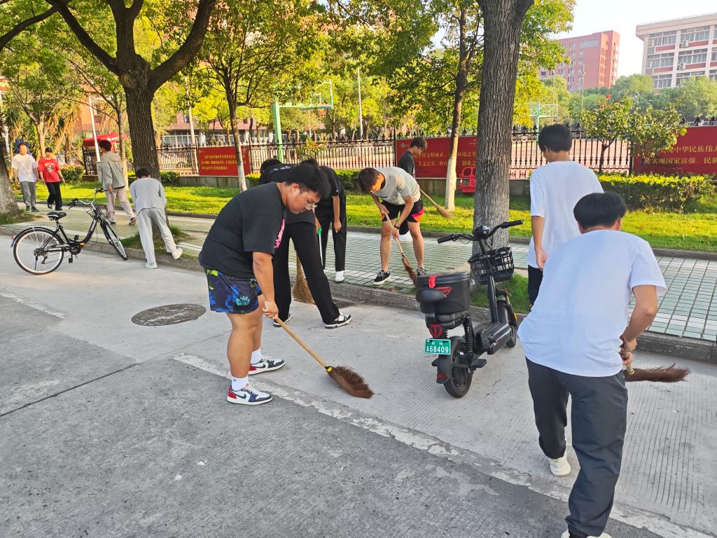 活动以班级为单位依次轮值。在学院专兼职辅导员带领下,同学们分工协作,对责任路段进行全面清洁,清扫路面垃圾、将电动车摆放整齐,使校园环境焕然一新。