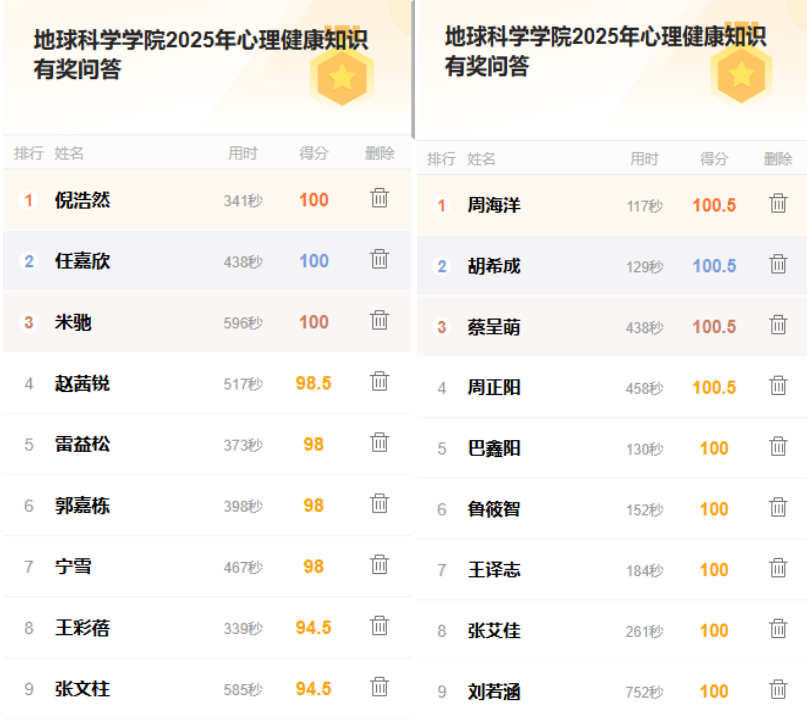 (通讯员 王俊涵 王红桥)为提升学生对心理健康的重视程度,引导学生掌握科学的心理健康知识,十大网投正规官网于 11 月学生骨干心理健康教育专题讲座前后,主要面向 2025 级本、研究生开展了线上心理健康知识有奖问答活动。 本次活动通过 “问卷星” 平台线上开展,参与者借助手机即可便捷答题。活动吸引 176 名学生踊跃参与,其中还包括少数24级同学,营造了学习心理健康知识的浓厚氛围。为保障公平性,后台采用随机出题模式,50 道判断题涵盖心理健康基础知识、常见心理问题识别与应对、心理调适方法等多个板块。 结果显示,多数同学掌握了一定的心理健康知识,平均分达87.17分,其中本科生的平均分(86.86分)略高于研究生(85.8分),14人获得满分。值得关注的是,学生们对“情绪不好,就是抑郁症”、“适当运动有益于情绪健康,可以预防、缓解焦虑、抑郁”、“睡不好,别忽视,可能是心身健康问题”认知度最高,正确率达到100%。但是,对于“和有自杀念头的人讨论自杀会增加他们的自杀风险”(错误,答题正确率39.5%)、“少量喝酒有助于促进睡眠质量”(错误,答题正确率49.4%)、“荨麻疹、慢性胃炎、胃溃疡、支气管哮喘等都属于心身疾病”(正确,答题正确率55.9%)、“决定了要自杀的人是不会告诉别人的”(错误,答题正确率56.6%)、“长期过量饮酒是心理疾病”(正确,答题正确率57.1%)的认知正确率最低,显示出学生们的认知误区。针对这些认知盲区,学院将通过微信公众号推送、每周心理安全视频科普等多种渠道,开展针对性误区纠正工作。 此外,学生们通过问卷积极反馈需求,希望学院多组织人际关系、情绪调适等主题活动,并提出 “增设压力管理类讲座”、“举办更多体验式、互动式小组活动”、“灵活安排活动时间以方便参与” 等具体建议,为学院后续心理健康教育工作的开展提供了明确方向。据悉,本次活动是十大网投正规官网第三次举办心理健康知识有奖问答活动。 (编辑 王红桥 审核 冯舒)