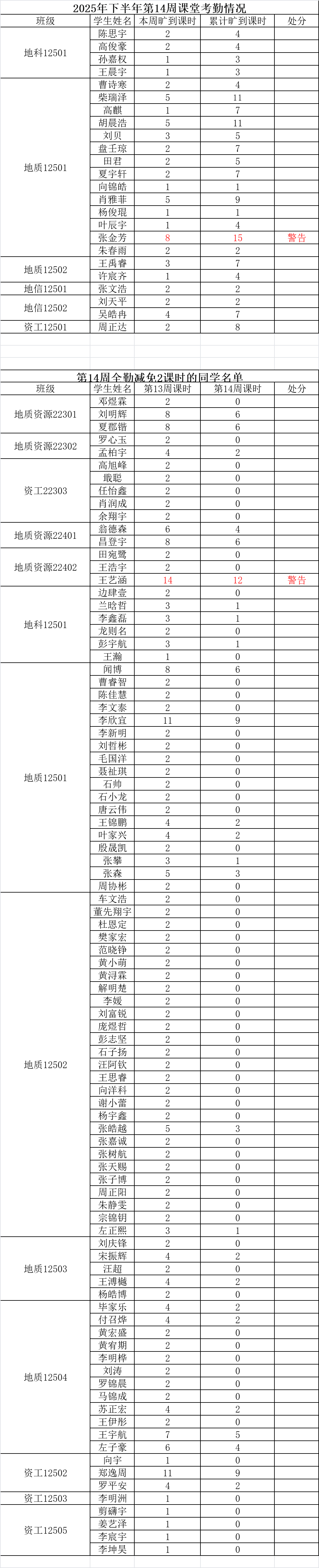 注:若学生某周存在旷课记录,但次周所有课程均正常到课(无迟到、旷课),则可从该生累计旷课课时中减免 2学时。