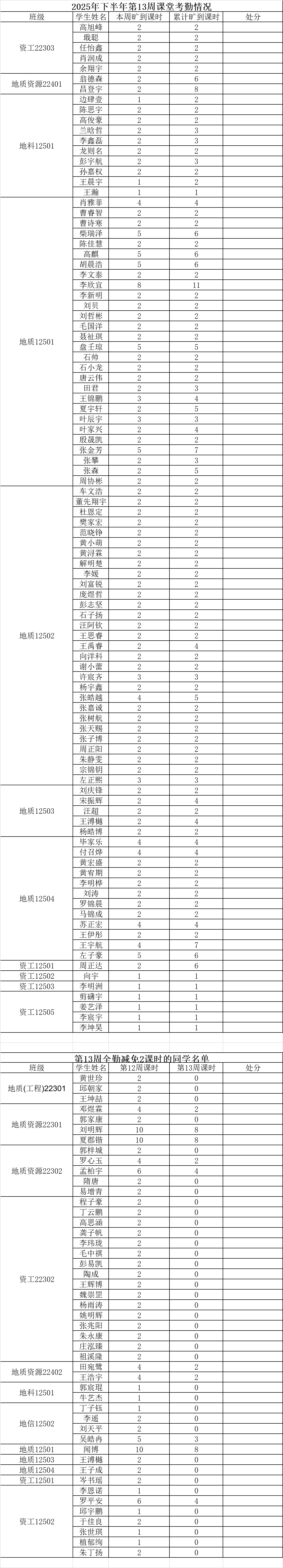 一、旷课学生名单