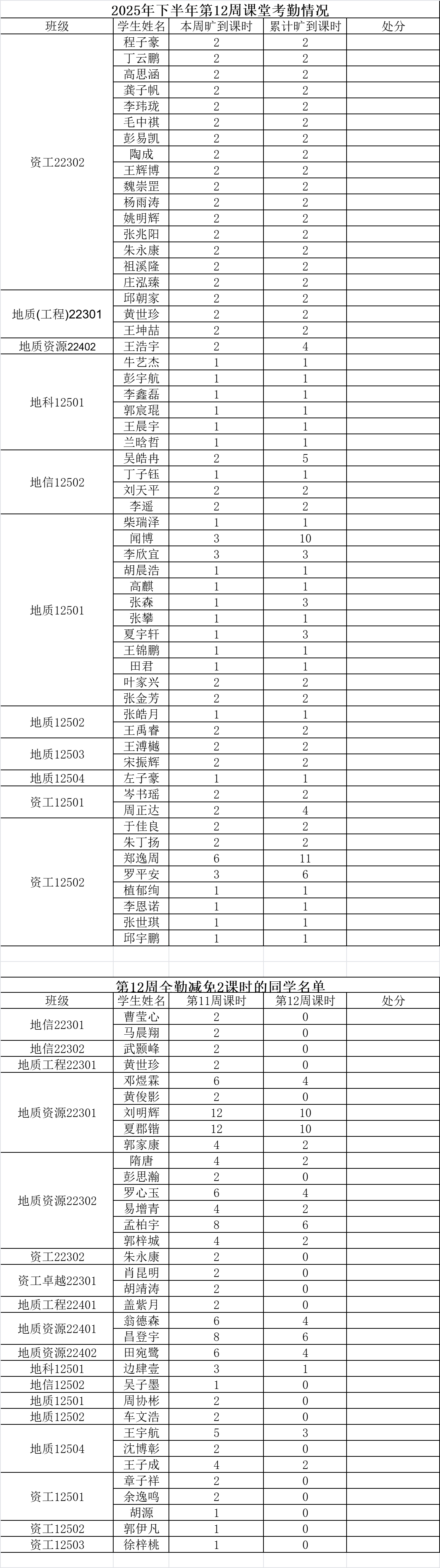 注:若学生某周存在旷课记录,但次周所有课程均正常到课(无迟到、旷课),则可从该生累计旷课课时中减免 2学时。