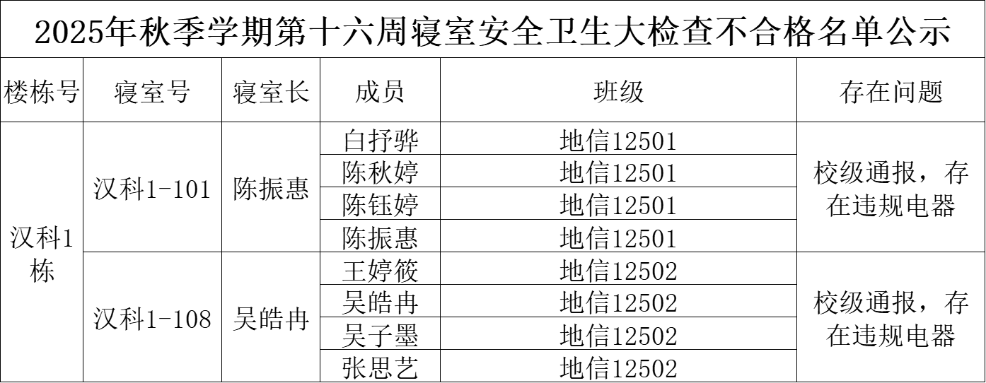 为加强学生宿舍安全管理和文明建设工作,确保学生宿舍安全、整洁、文明、有序,根据学校要求,十大网投正规官网于12月25日开展了第16周学生宿舍自查工作,现将检查情况通报如下