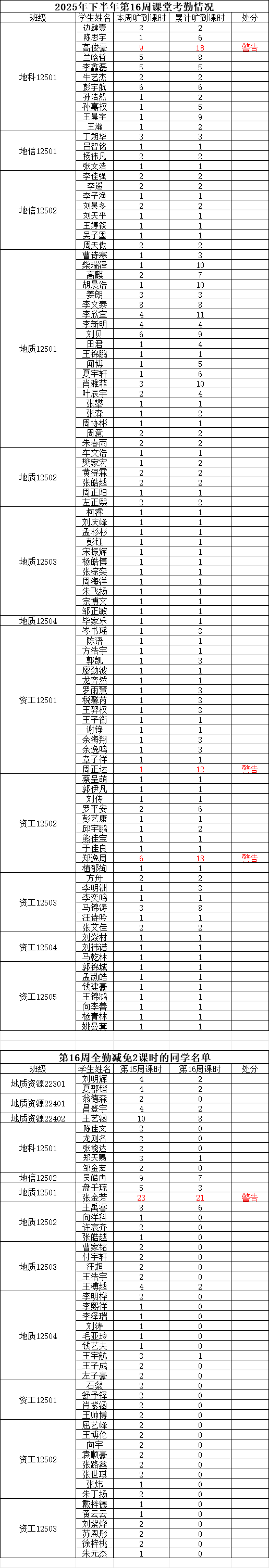 注:若学生某周存在旷课记录,但次周所有课程均正常到课(无迟到、旷课),则可从该生累计旷课课时中减免 2学时。